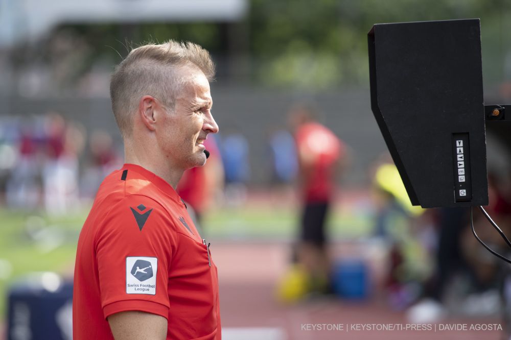 «Mit dem VAR hast du immer Radar»: Bieri checkt eine Situation am Bildschirm, Lugano im Sommer 2022.