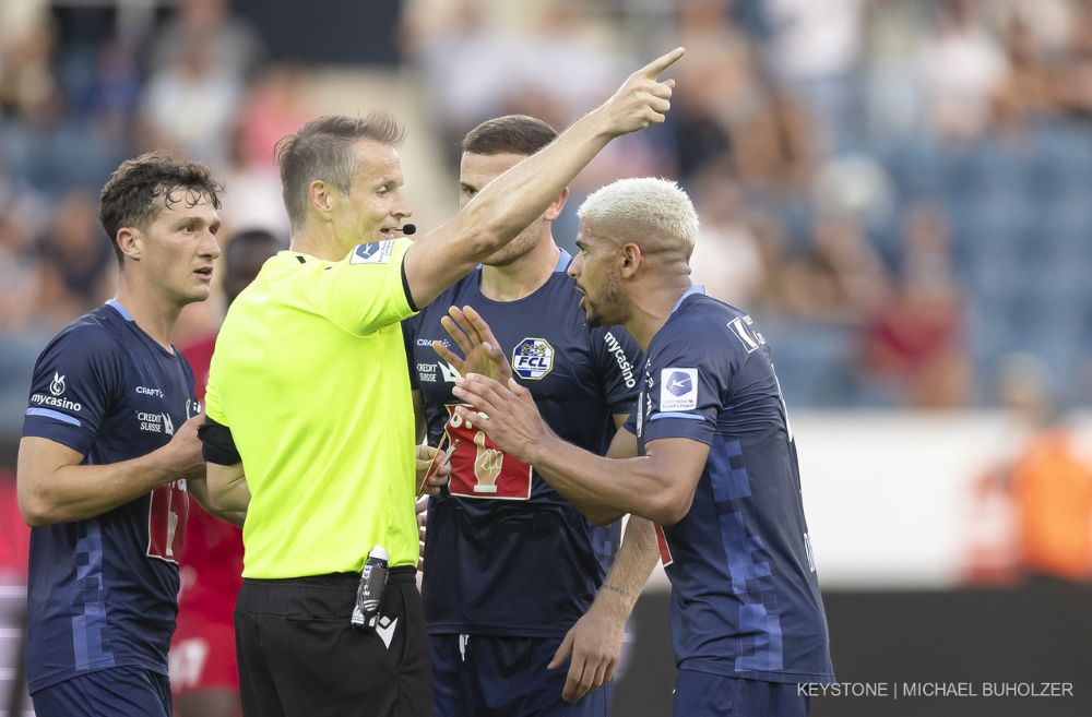 Ein Spieler sieht rot – und entschuldigt sich danach: Rote Karte gegen Mohamed Dräger vom FC Luzern, August 2022.