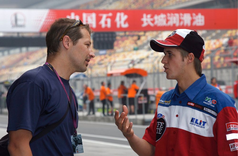 Jörg Wetzel hat den Weg für die Sportpsychologie in der Schweiz vorgespurt – hier 2007 mit Töffpilot Tom Lüthi in Shanghai. (Keystone)