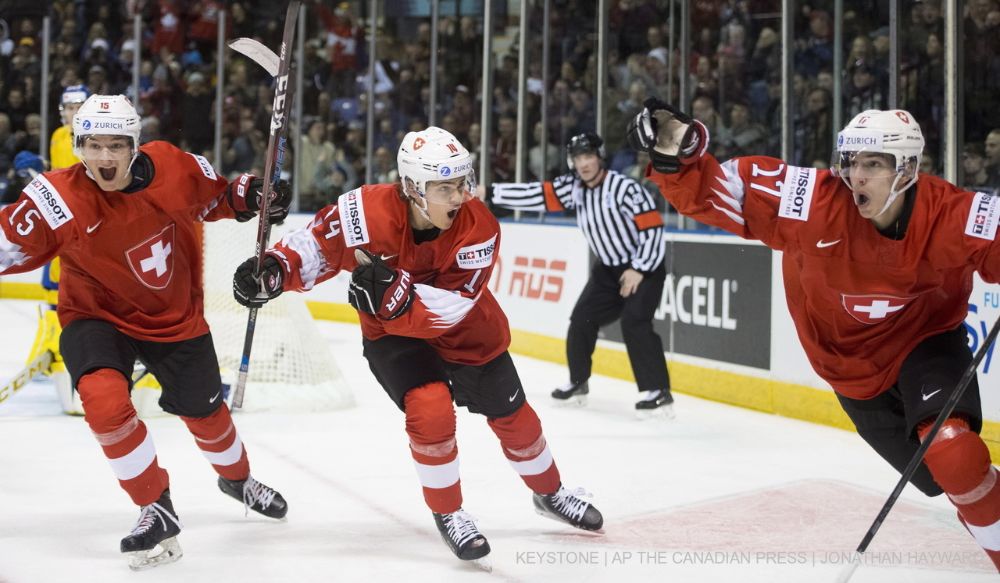 Auf direktem Weg nach oben: Luca Wyss (r.) erzielt an der Junioren-WM 2019 das 2:0 gegen das grosse Schweden – und träumt von der NHL.