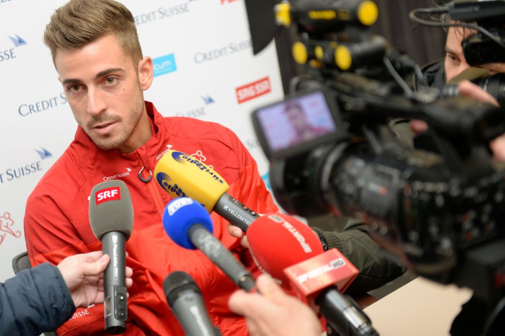 Schönbächler 2014 bei einem Medientermin mit der Nationalmannschaft – heute nützen ihm diese Kontakte (Keystone-SDA).
