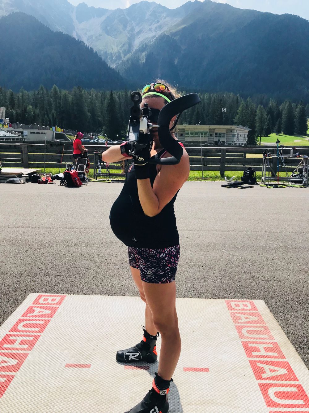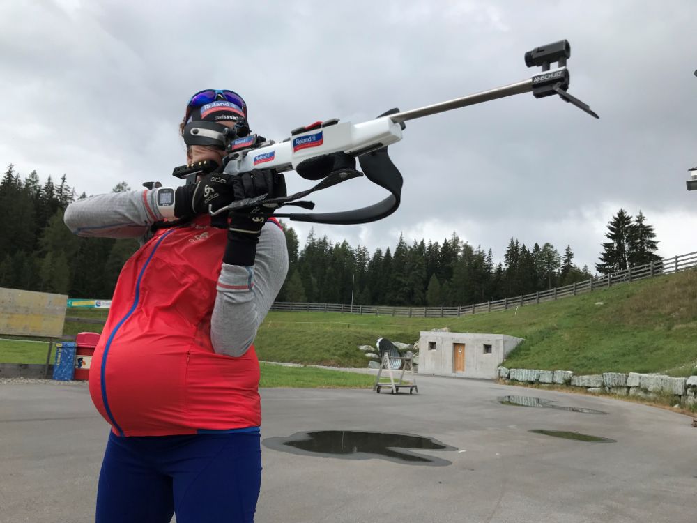 Selina Gasparin im Schiesstraining während der Schwangerschaft (Foto: zvg. Selina Gasparin).