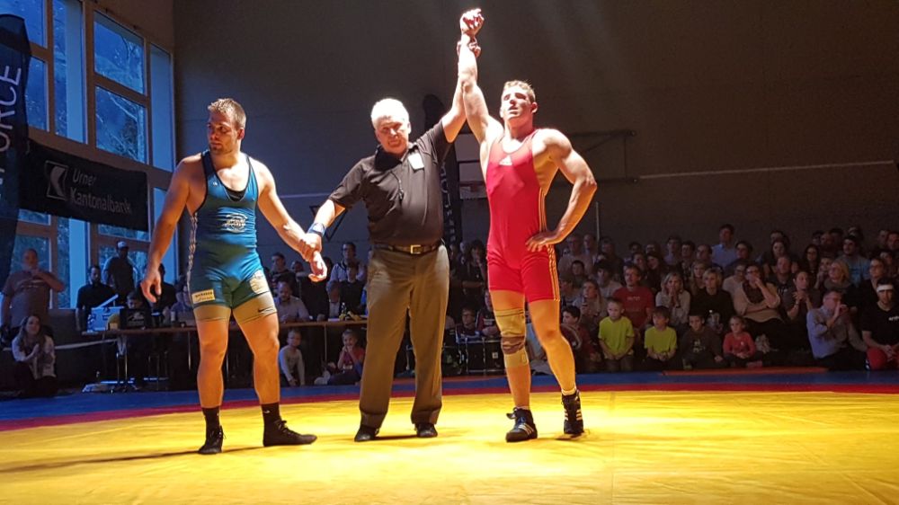 Von Oktober bis November 2019 kehre ich regelmässig in die Schweiz zurück, um für mein Team aus Schattdorf im Kanton Uri anzutreten. In der Regel reise ich am Freitagnachmittag aus Minsk ab. Nach der Landung in Genf nehme ich den Zug nach Martigny. Dort geht es zum Laufen und in die Sauna, um Gewicht zu verlieren. Am Samstag sitze ich drei Stunden mit einem Teamkollegen im Auto und fahre nach Schattdorf. Vor ein paar Tausend begeisterten Zuschauern bestreite ich meine Ringkämpfe – unser Team ist der Stolz des Ortes!