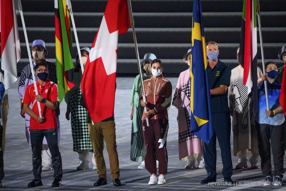 Alors que Max Heinzer (escrime) et Mujinga Kambundji (athlétisme) avaient porté le drapeau suisse lors de la cérémonie d'ouverture, c’est la karatéka Elena Quirici qui a eu cet honneur lors de la cérémonie de clôture. « L'esprit combatif qu’Elena a montré sur son chemin vers les Jeux Olympiques et sa performance pleine de courage lors du tournoi olympique m'ont fasciné. Elle est donc un modèle pour de nombreuses athlètes féminines de notre pays et mérite le rôle de porte-drapeau », a expliqué Ralph Stöckli à propos de sa décision.